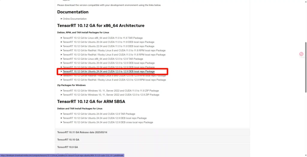 sudo dpkg -i nv-tensorrt-local-repo-ubuntu2404-10.12.0-cuda-12.9_1.0-1_amd64.deb