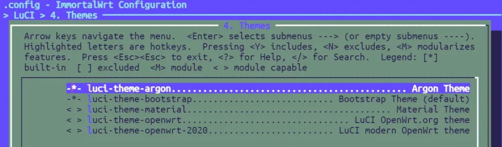 例如Argon主题位于 LuCI > Themes,双击空格选中Argon主题即可